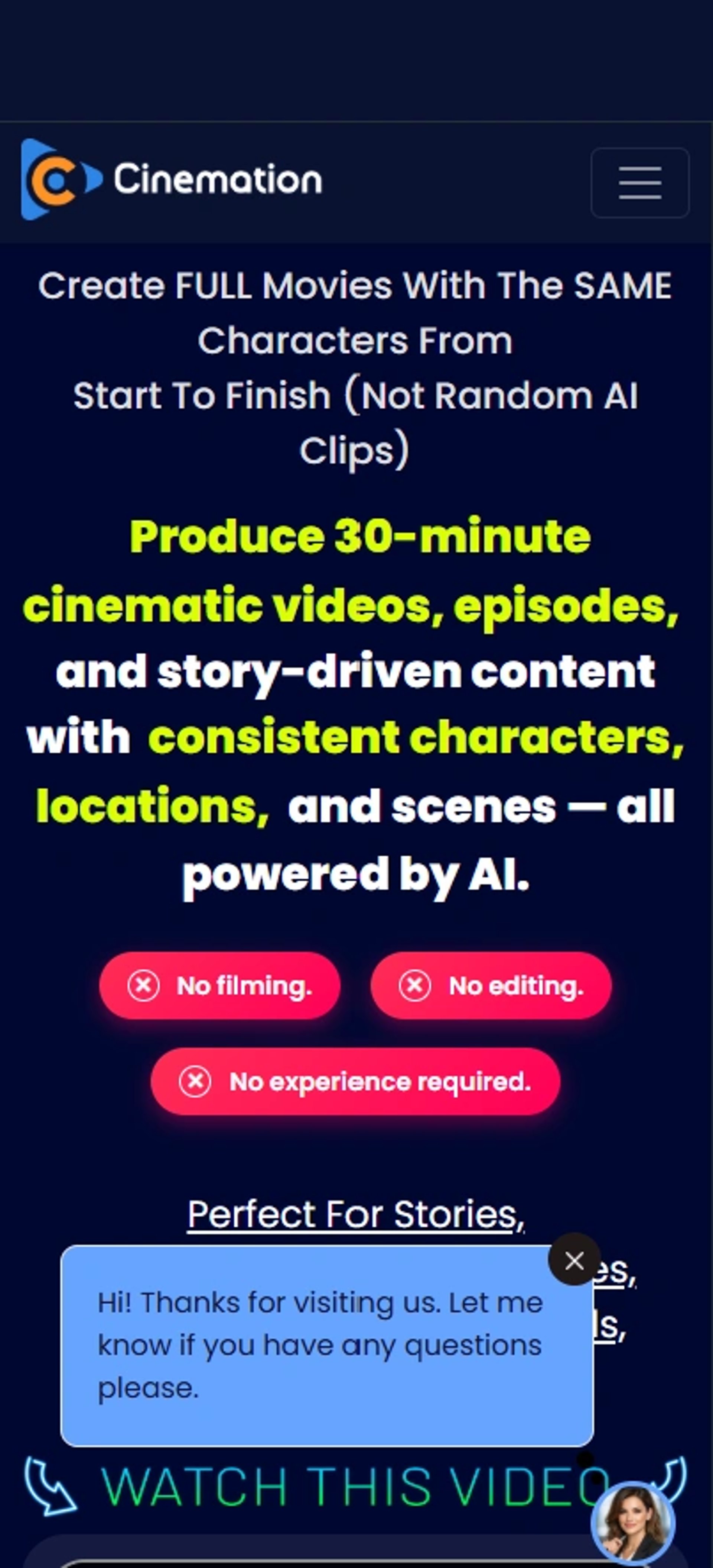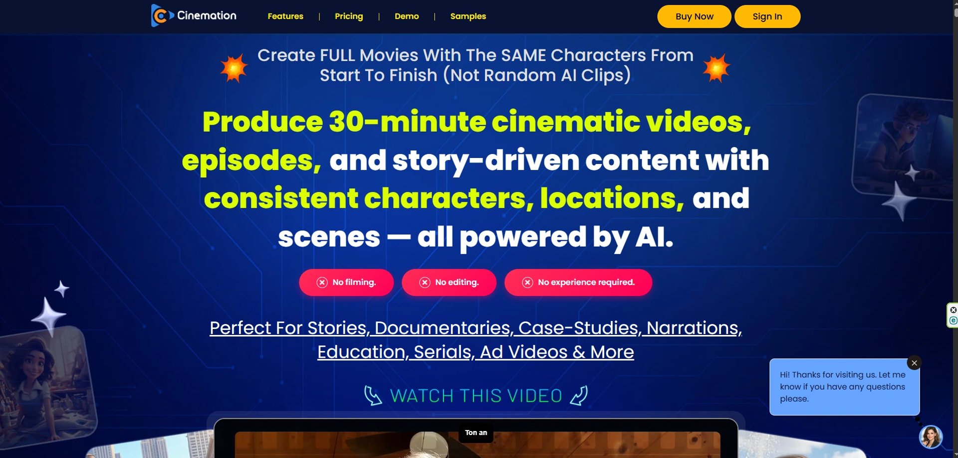 With the breakthrough Cinemation AI-Cinema Revolution, we present the world’s first, 100% automated AI system for high-end cinematic storytelling. Discover the power of a complete "Done-For-You" (DFY) Story Engine—a framework designed so that you require zero previous filmmaking experience.